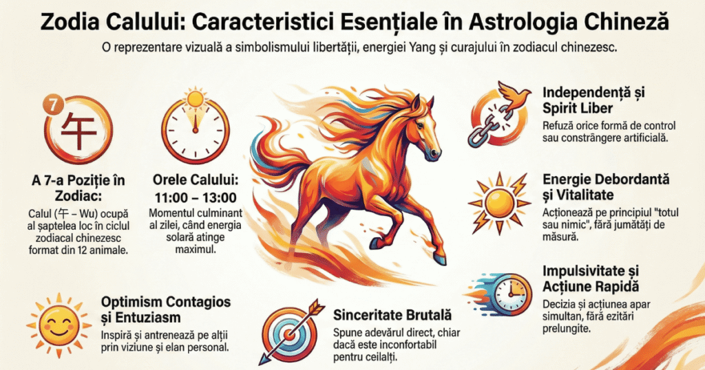 Notă: Interpretările privind influența Anului Calului de Foc 2026 asupra zodiilor chinezești sunt orientative și generale. O analiză astrologică relevantă presupune evaluarea completă a hărții Ba Zi individuale (data, ora nașterii, structura elementelor, ciclurile de noroc), precum și a contextului specific de viață al fiecărei persoane.