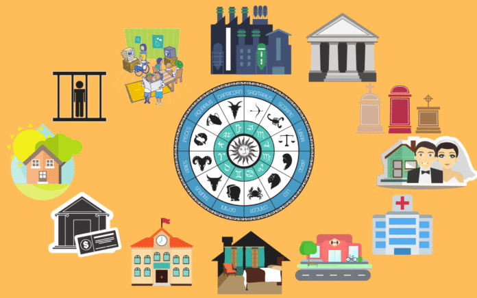 Așadar aceste domenii sunt marile ‘categorii’ ale vieții noastre; ele exprimă relația noastră cu propriul corp, cu posesiunile noastre, felul cum abordăm relațiile noastre conjugale, relația cu părinții, cu rudele, cu prietenii, educația, munca, profesia, distracțiile etc; ele se reflectă în cele 12 ‘locuri’ sau ‘locașuri’ astrologice (bhāvas).