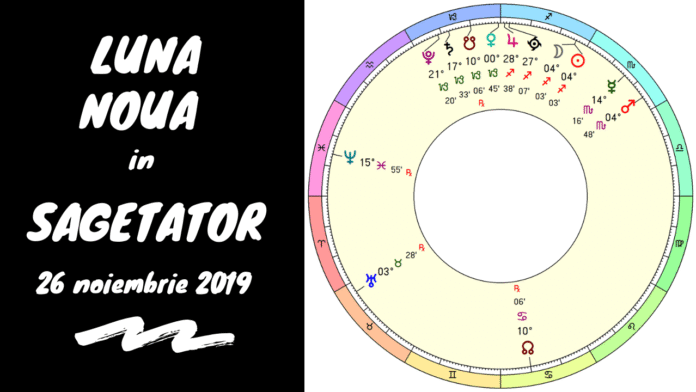 Configurația astrologică ce corespunde momentului Lunii Noi din Săgetător (26 noiembrie 2019, ora 17.05) semnifică o perioadă de tranziție și de adaptare, de speranță și încredere în plan social. În România, Luna Nouă se produce în semnul Descendent al acestui moment: atenția generală este către scena exterioară a vieții, către aspecte ale vieții care pot fi mai greu influențate prin implicarea strict personală. Aglomerarea de planete din Săgetător și Capricorn (putem adăuga și Scorpionul aici) este grăitoare pentru amplificarea uriașă a importanței factorului social, colectiv în viețile noastre individuale, iar acest impact ‘social’, colectiv, va fi cât se poate de vizibil în următoarele trei luni.