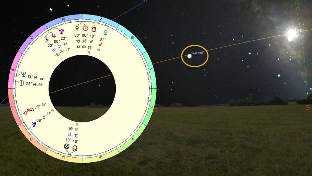 (dispozitorul Nodului Lunar Nord este conjunct cu Soarele, Saturn la 0 grade).