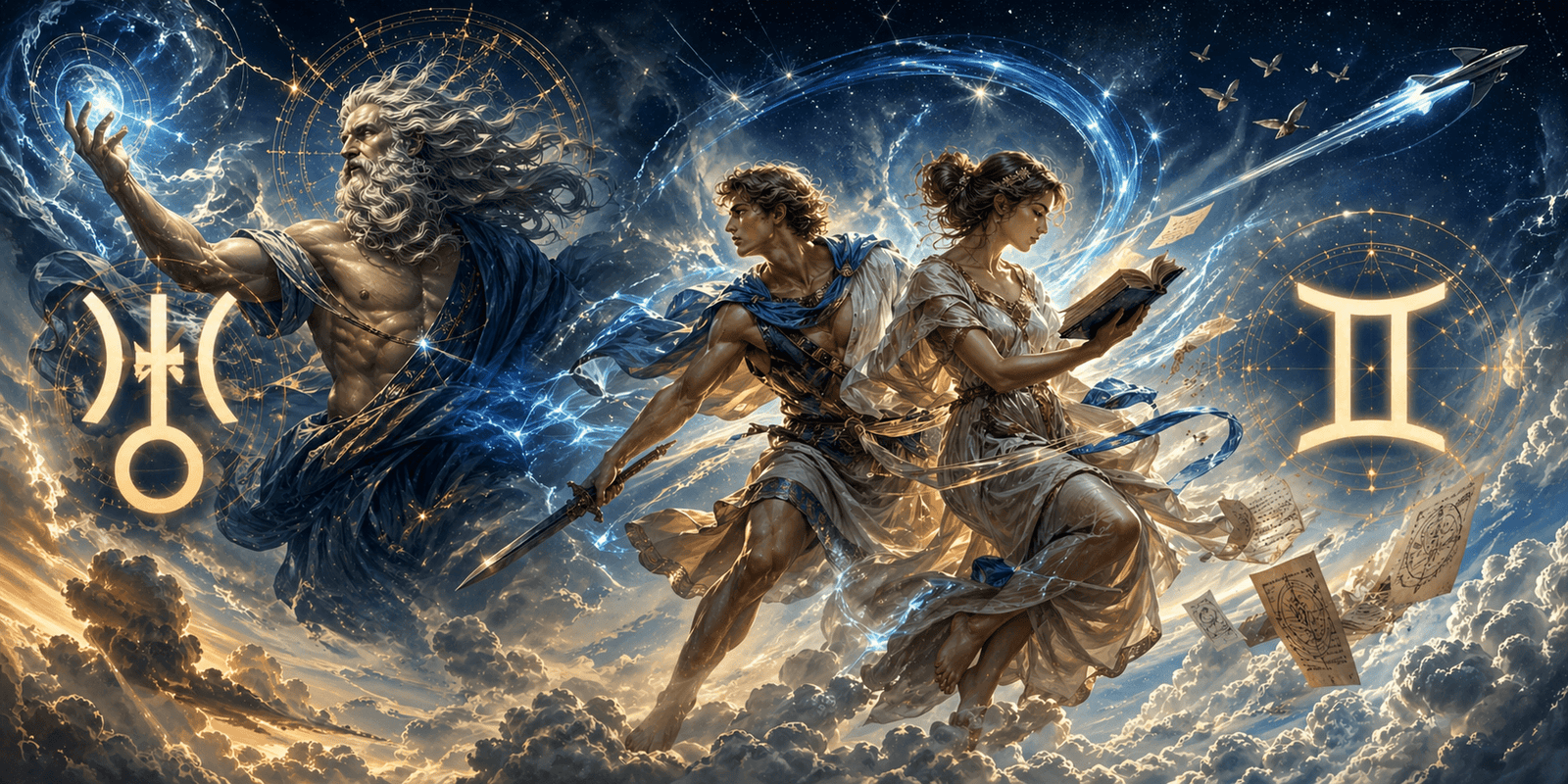 Pe de altă parte, Gemenii — al treilea semn al zodiacului, guvernat de Mercur, element Aer — reprezintă principiul dual al minții: